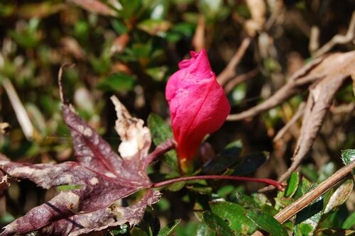 前の記事からの続きでございます。 で、万両のすぐ傍の石垣にツツジが植えてあって まったく手入れが行き届いていない(手入れをしていないとも言う)ので ツツジは好き勝手に枝を伸ばして花も少ないのですが なんとまぁ、先日蕾を見つけまして その蕾が咲き…