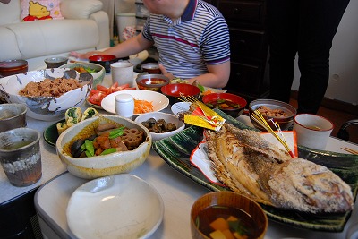新米ママ(座敷童女2号)の手作りの料理が並ぶ。