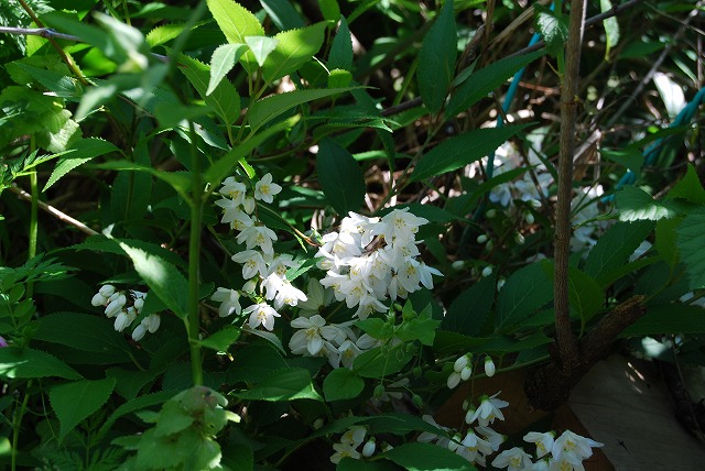 卯の花の上のほうにはシロヤマブキが咲いております。